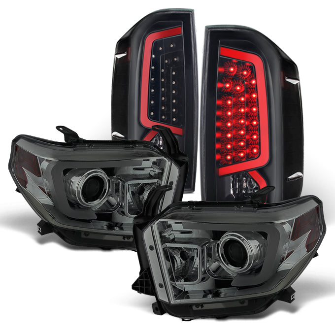 AKKON - For 2014-2021 Tundra Smoked DRL LED Tube Projector Headlights Pair & Black LED Taillight Set