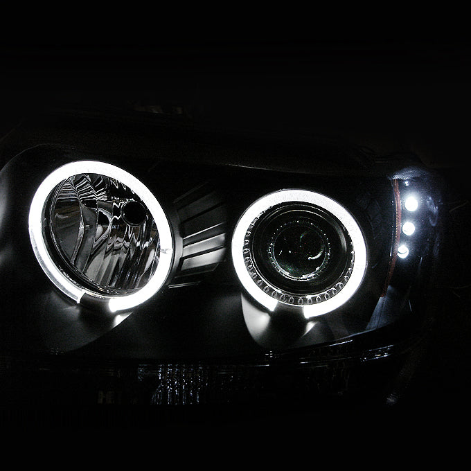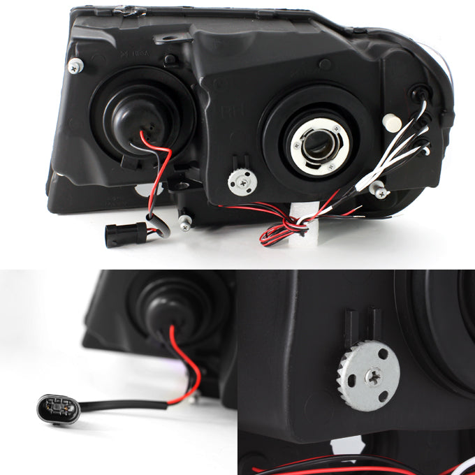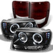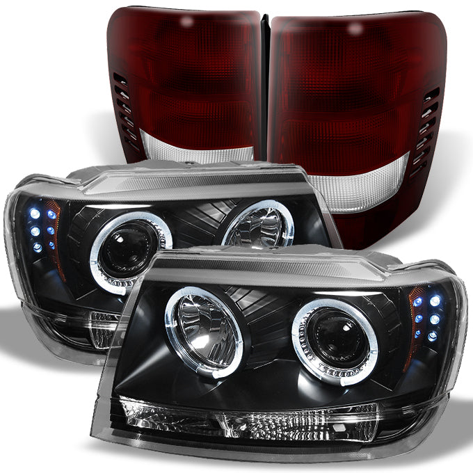 Fits 99-04 Grand Cherokee Black Halo Projector Headlights+Dark Red Tail Lights