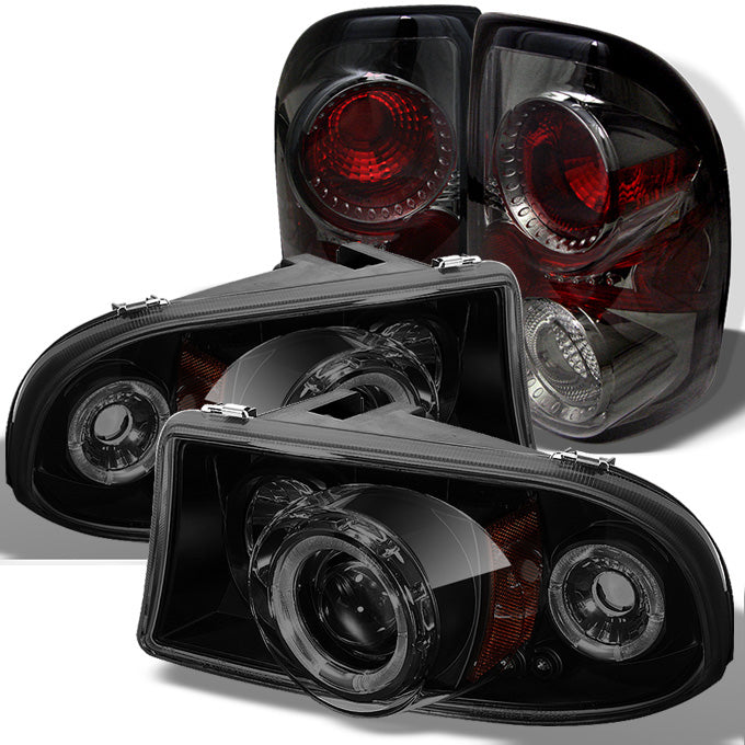 Fits 97-04 Dodge Dakota Black Smoke Dual Halo Projector LED Headlight+Tail Light