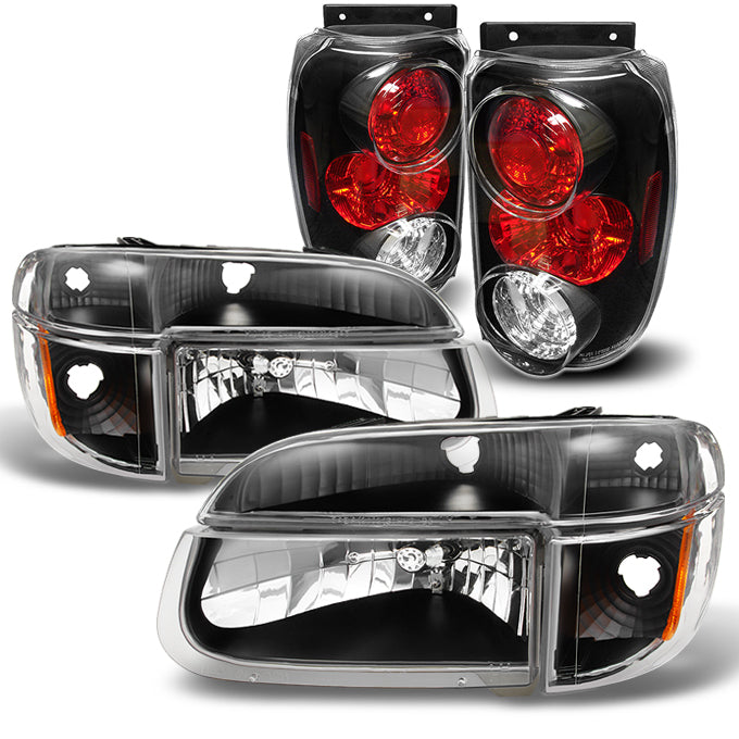 AKKON - For 1995-1997 Ford Explorer/ 97 Mercury Mountaineer Black Headlights + Black Tail Lights Replacement