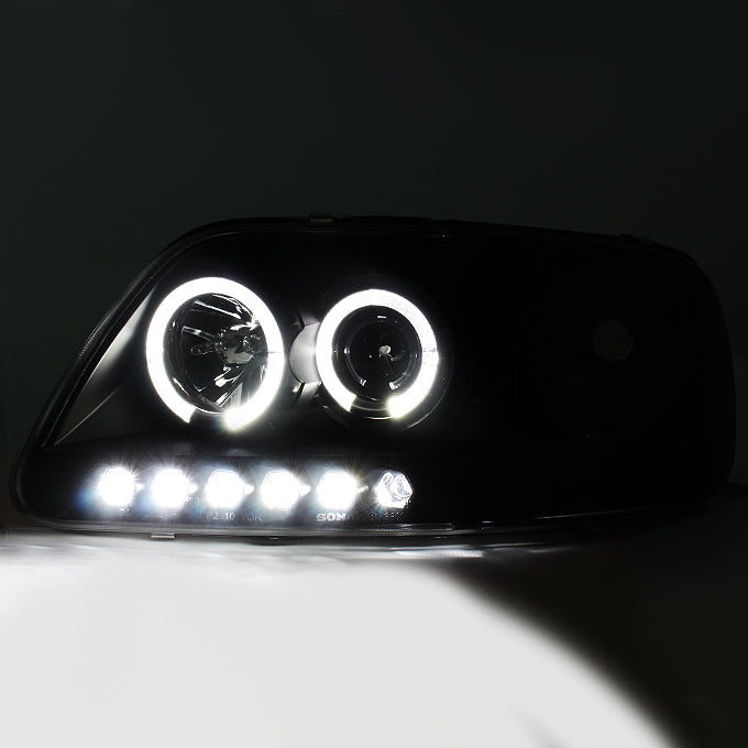 AKKON - For 1997-03 Ford F150 | 04 F150 Heritage| 97-99 F250 Light Duty Black Smoked LED Headlights & Taillights