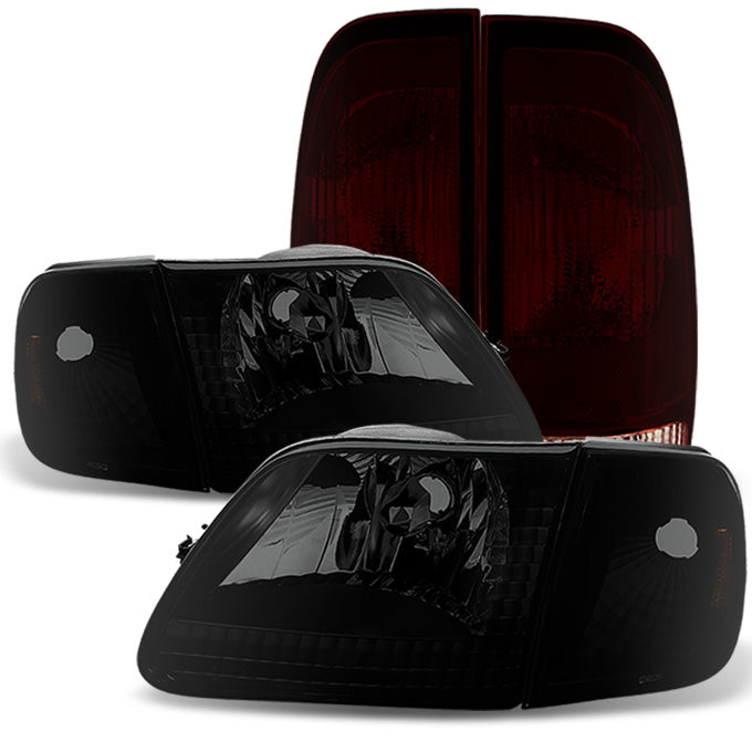 AKKON - For Pickup Truck 04 F-150 Heritage | 97-03 F150 Black Smoked Headlights+Signal Light+ Dark Red Tail Lamp