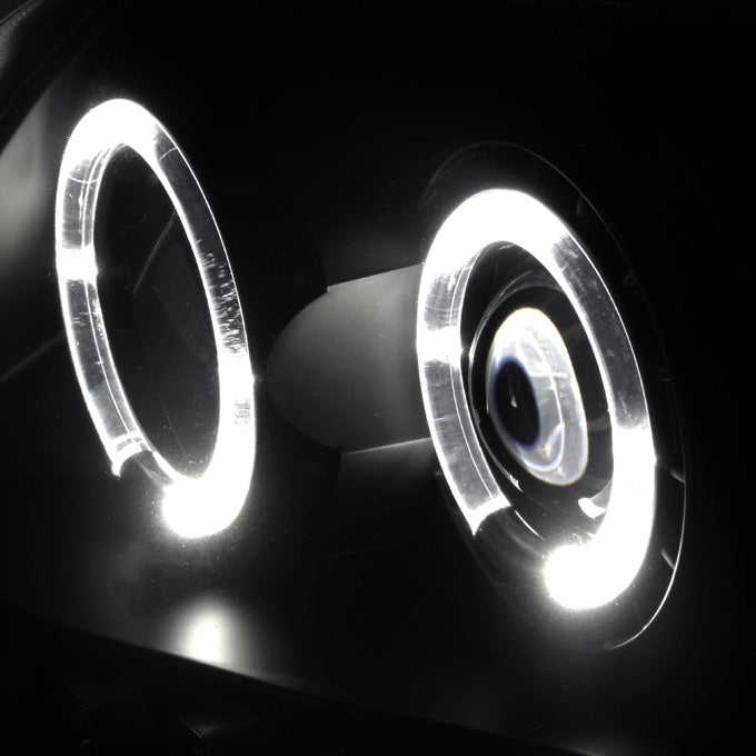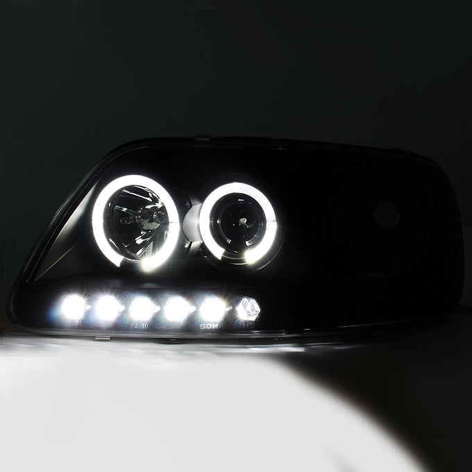 AKKON - For 1997-03 Ford F150 2004 Heritage Black Smoked Halo LED Projector Headlights+Dark Red Tail Lights Lamp