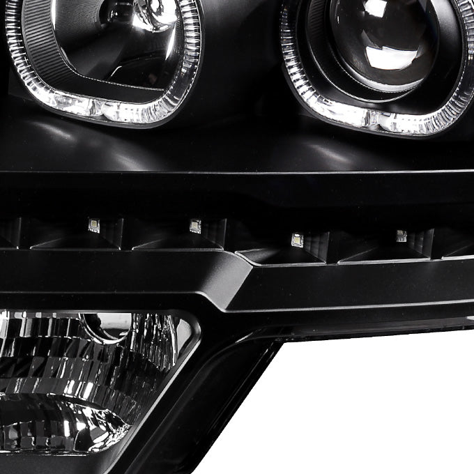 AKKON - For [Dual LED Halo Ring] 09-14 F150 F-150 Pickup Truck Black Projector Headlights + LED Tail light Set