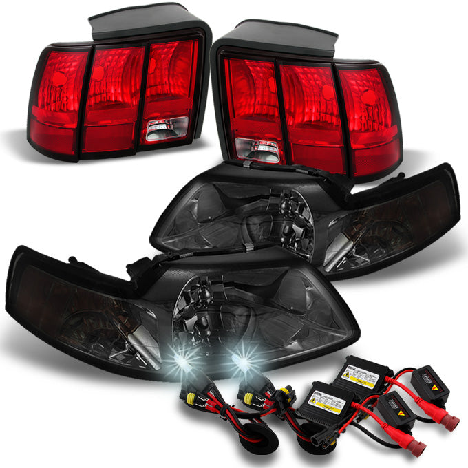 AKKON - For Ford Mustang 2Dr Coupe Smoke Headlights + Red Clear Tail Lights + Slim Ballast 6000K White HID Kit
