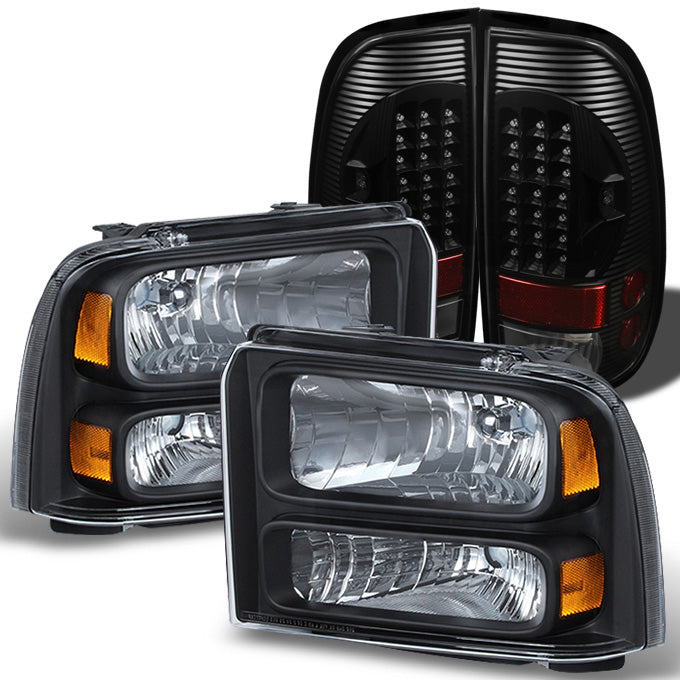 AKKON - For Truck F-Series F250 F350 F450 F550 Super Duty Black Headlights + LED Black Tail Lamp Combo