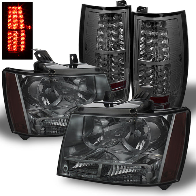 AKKON - For Chevy 2007-2014 Suburban Tahoe Smoked Headlights + Smoke LED Tail Lights Brake Lamps