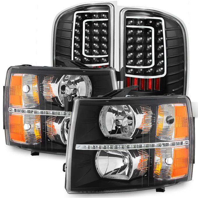 AKKON - For Chevy Silverado 1500 2500HD 3500HD Black Housing LED DRL Headlights + LED Tail light Set