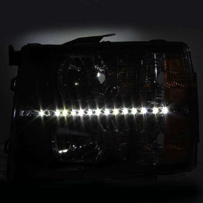 AKKON - For Silverado 2007-2013 1500 | 07-14 2500HD 3500HD Black LED Headlight + Red Smoked Tail Light
