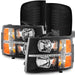 AKKON - For Chevy Silverado 1500 2500HD 3500HD Black Bezel LED DRL Headlights + LED Tail light Set L+R