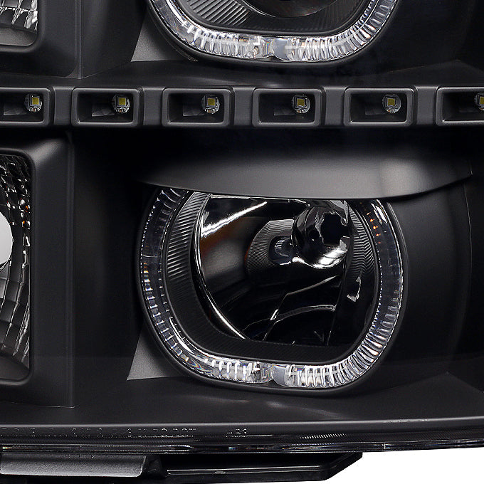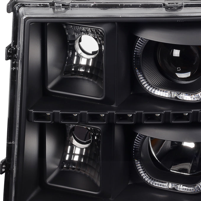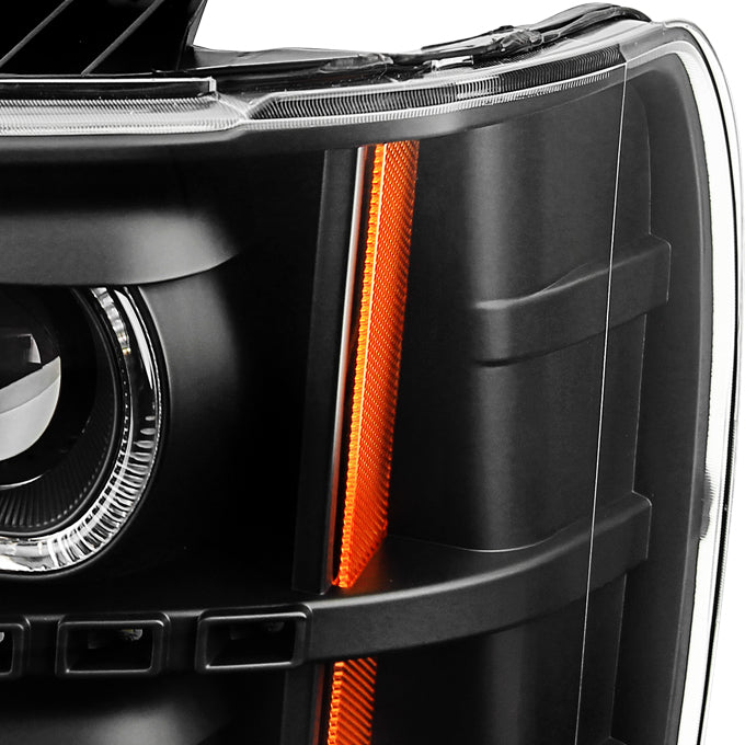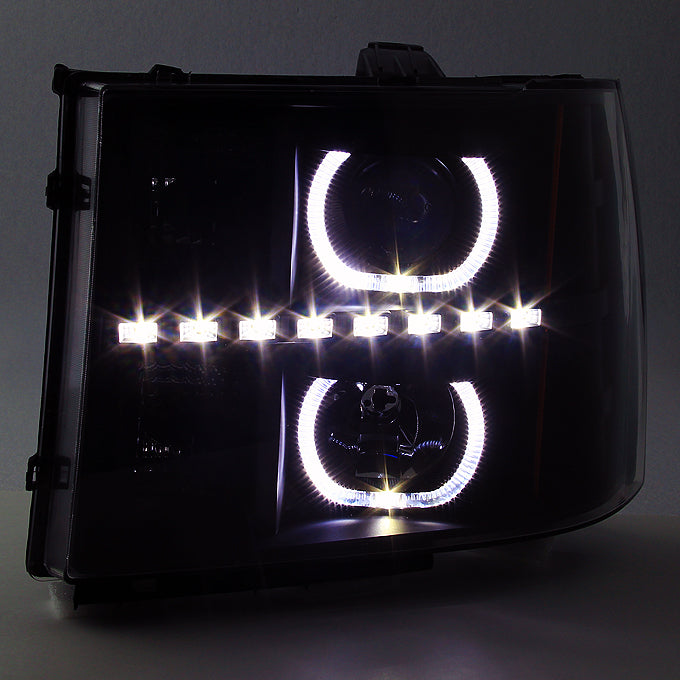 AKKON - For [Dual LED Halo Ring] 07-13 Sierra Pickup Truck Black Projector Headlights + LED Tail light Set
