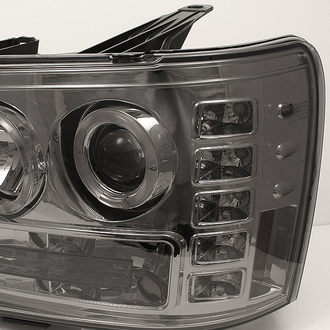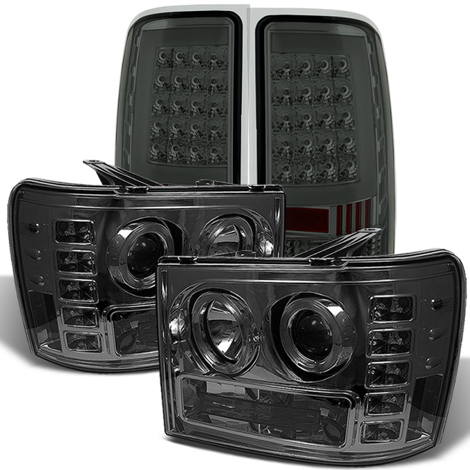 AKKON - For Smoked GMC Sierra 1500 2500HD 3500HD Dual Halo LED Projector Headlights+ LED Tube Tail Light Lamp
