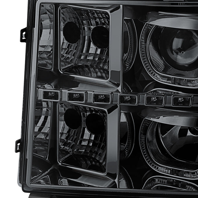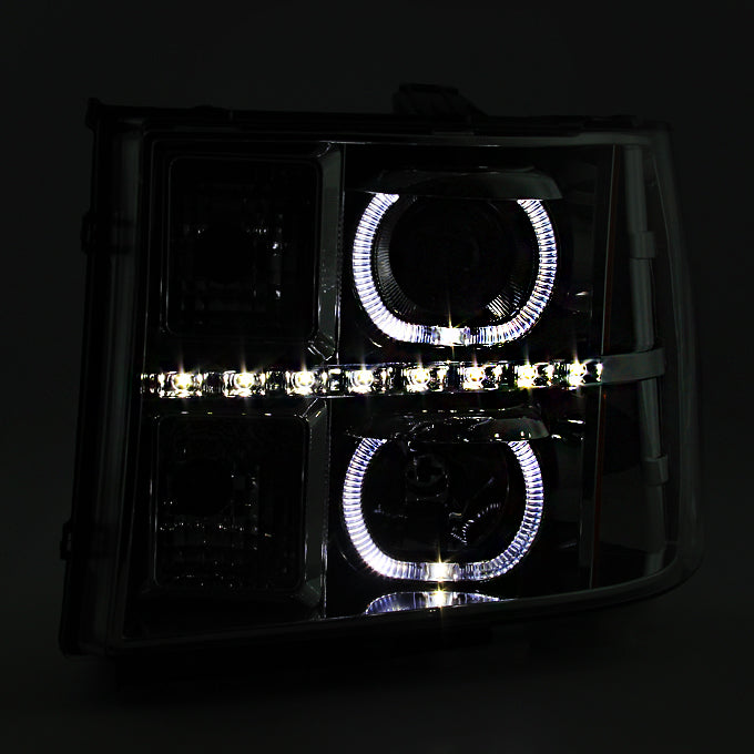 AKKON - For [Dual LED Halo Ring] 07-13 Sierra Pickup Truck Smoked Projector Headlights + LED Tail light Combo