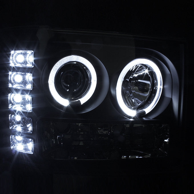 AKKON - For GMC Sierra [LED Dual Halo Ring] Black Smoked Headlight + [C-SHAPE LED] Tail Brake Lights Lamp Set