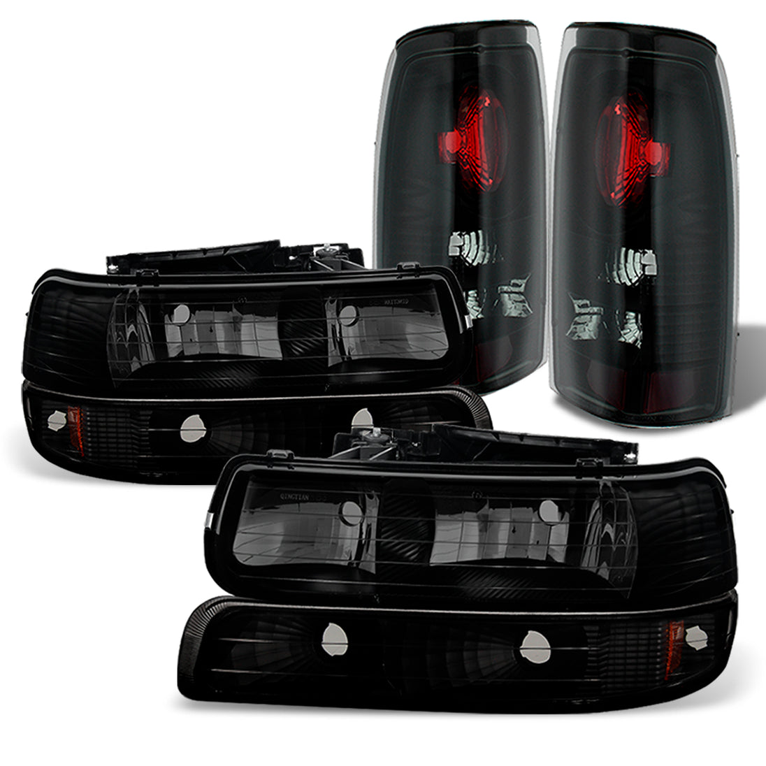 AKKON - For Black Smoked For 1999-2002 Chevy Silverado 1500 2500HD 3500 Headlights + Bumper Signal + Tail Lamps