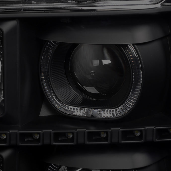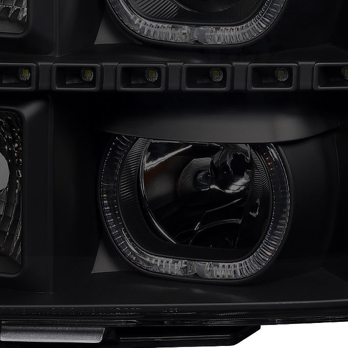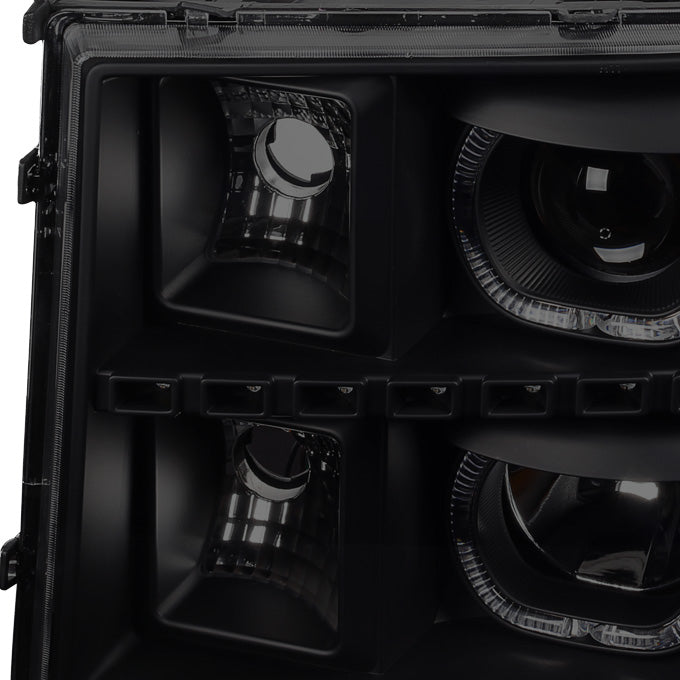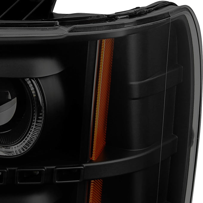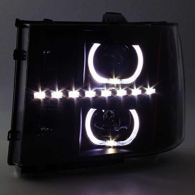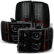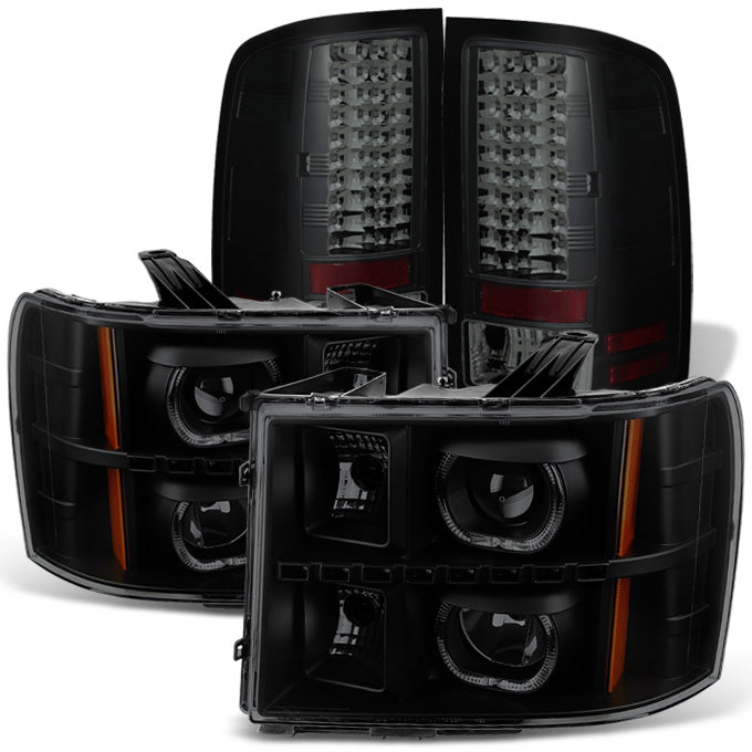 AKKON - For [Dual LED Halo Ring] 07-13 Sierra Pickup Truck Black Smoked Projector Headlights + LED Tail light Set