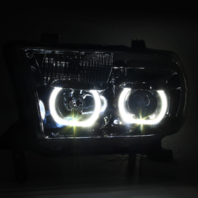 AKKON - For Pickup Truck Tundra 07-13 Dual Halo Smoked Headlights + LED Smoke Tail Lights Brake Lamp
