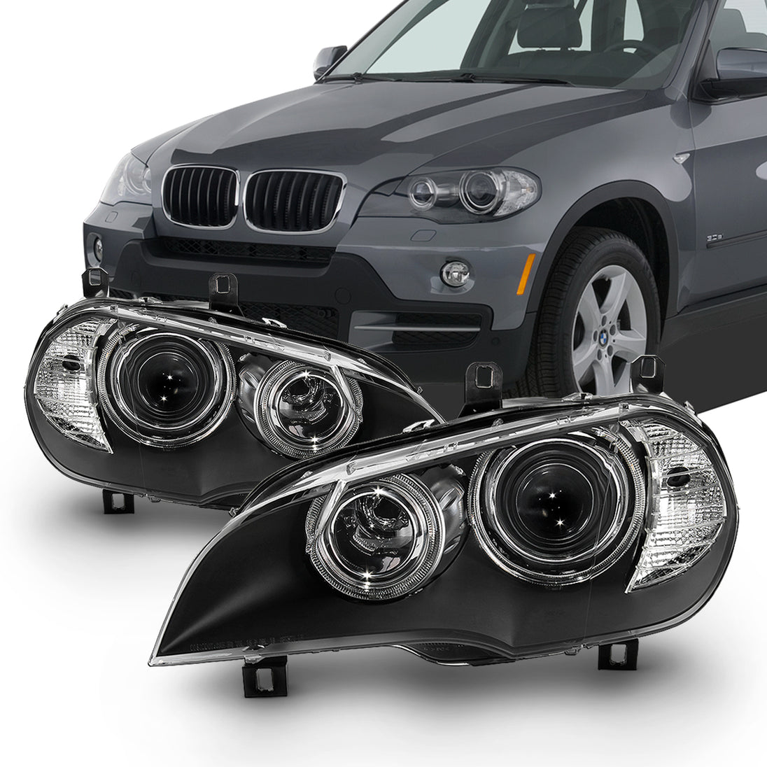AKKON - Fits 2007-2010 BMW E70 X5 Xenon [HID w/ AFS] Projector Black Headlight Pair Driver Left+Passenger Right Replacement