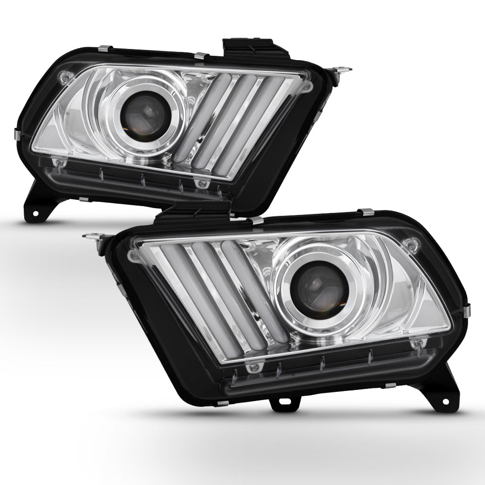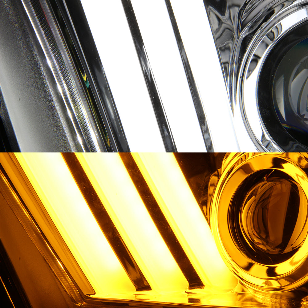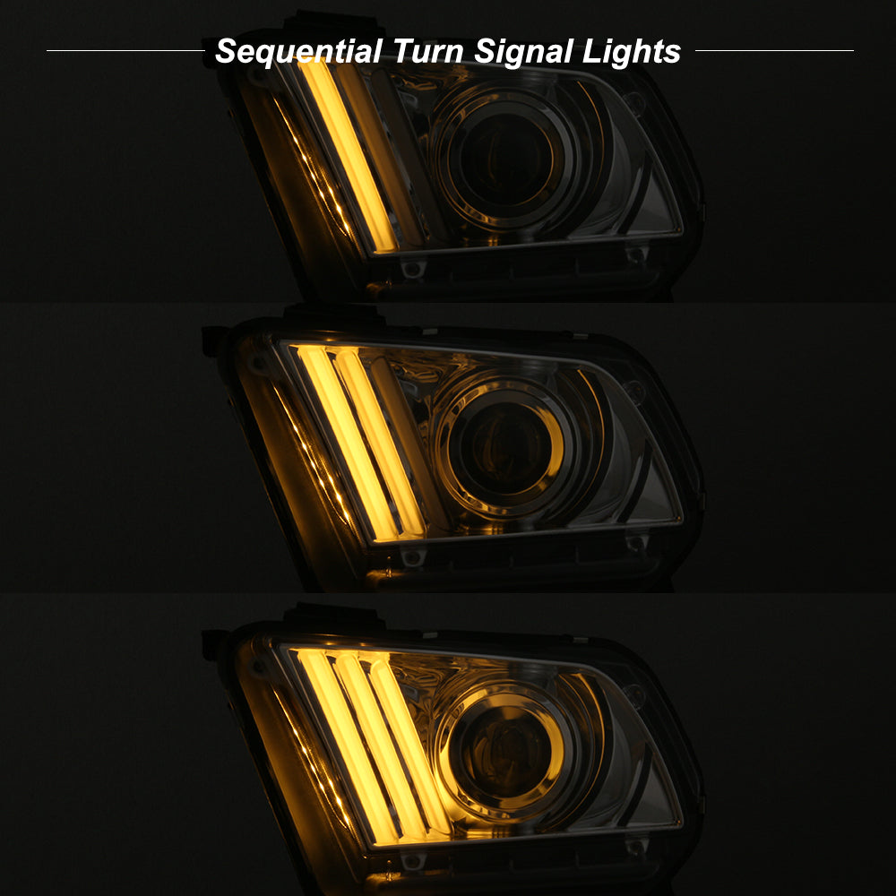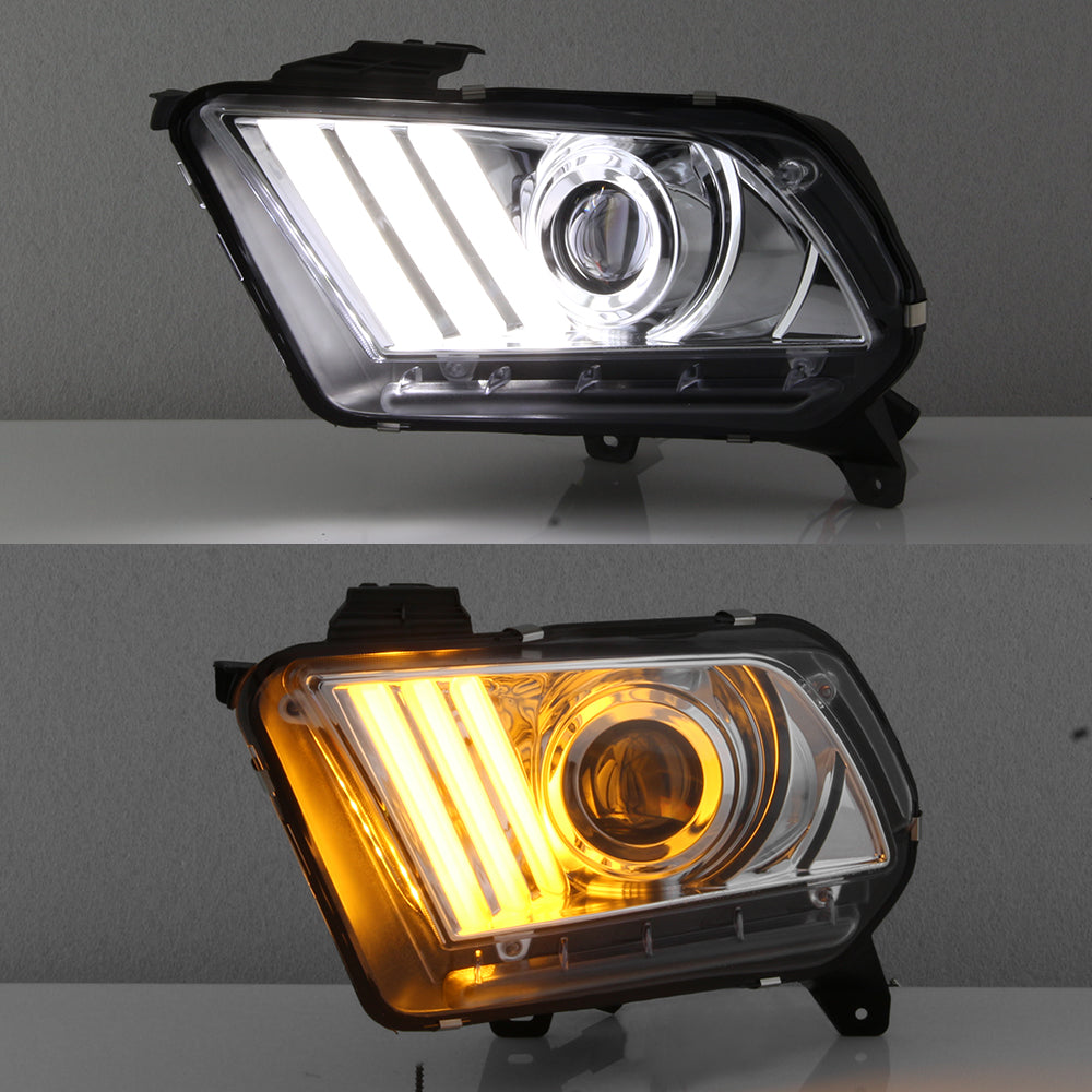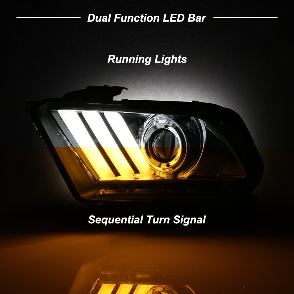 AKKON - For 2010-2014 Ford Mustang LED Tube Daytime Running Lamp w/Sequential Turn Signals Projector Headlights Chrome Housing