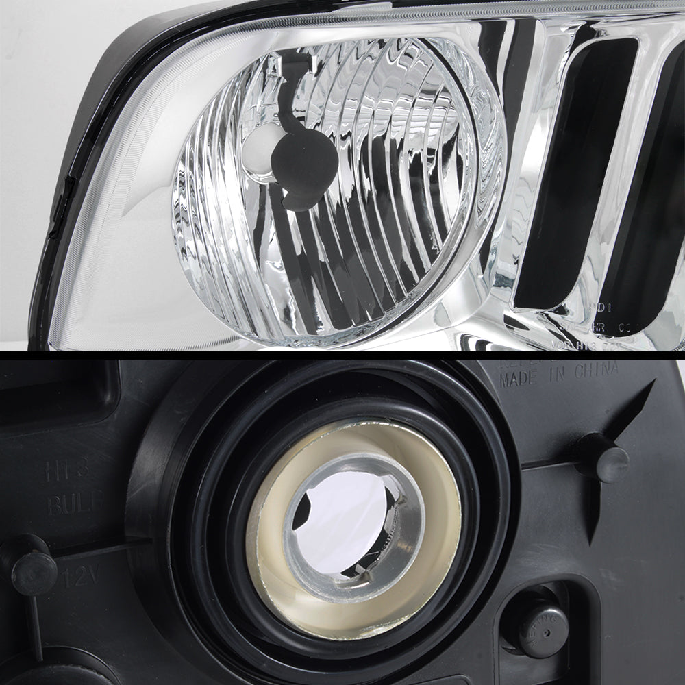 AKKON - For 2005-2009 Ford Mustang Halogen Model Chrome Clear Lens Headlight Lamp Replacment L+R