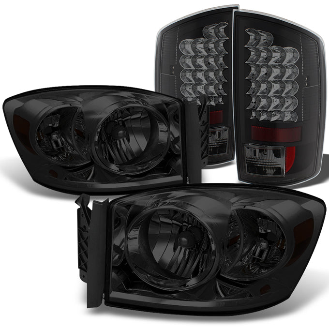 AKKON - For [Smoked Lens Set] 2006 Dodge Ram 1500 2500 3500 Pickup Truck Headlights + LED Tail Brake Lamp Combo