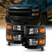 AKKON - For 2014 2015 Chevy Silverado 1500 Pickup Truck Black Bezel Headlight Lamp Assembly Driver + Passenger Side
