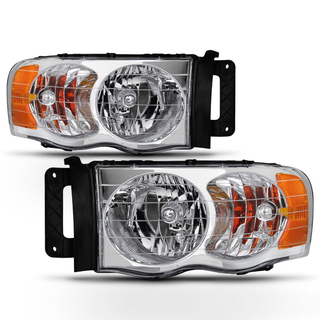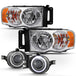AKKON - Fits 2002-2005 Dodge Ram 1500/ 2500/ 3500 Pickup Chrome Headlights + Halo Projector Clear Fog Lamp Light Pair Left+Right