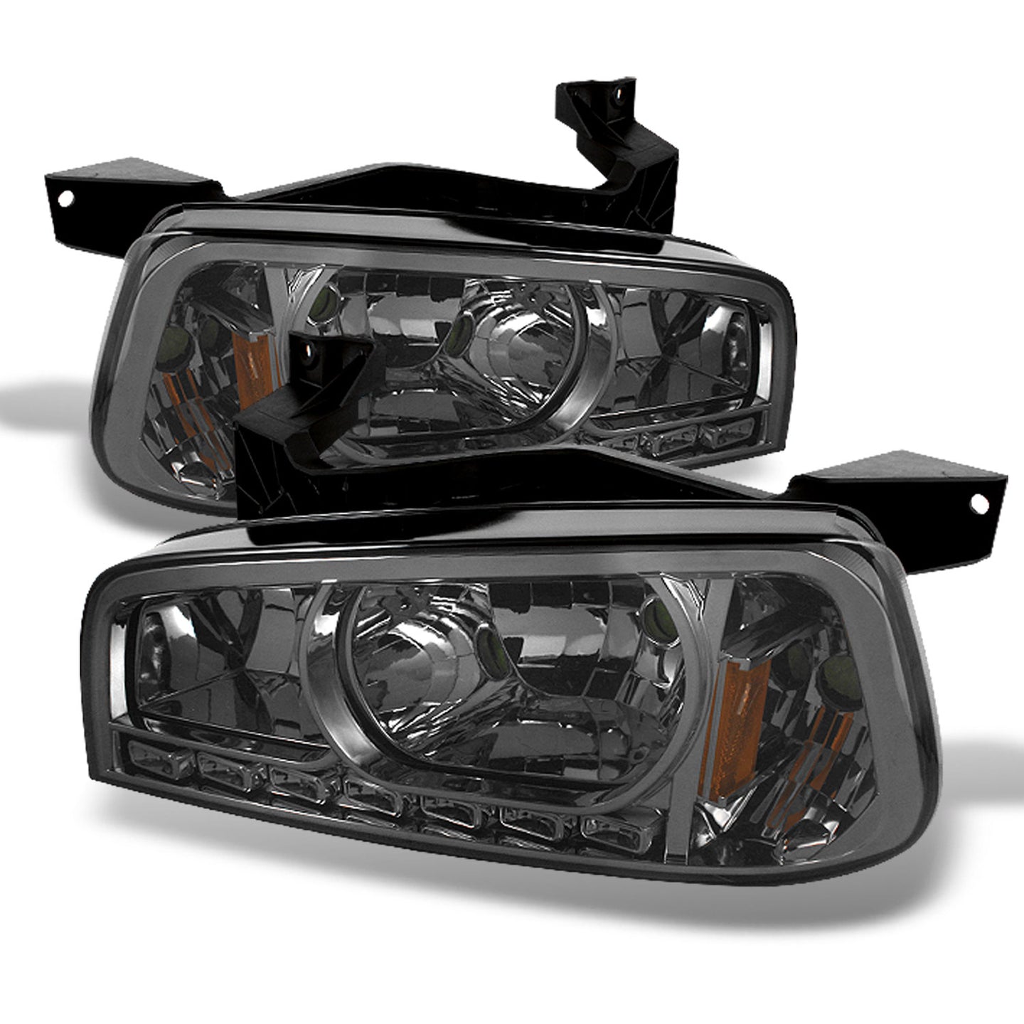 AKKON - Fits 2006 2007 2008 2009 Dodge Charger Chrome Smoked LED Headlights + Smoke Fog Lights Pair Left+Right