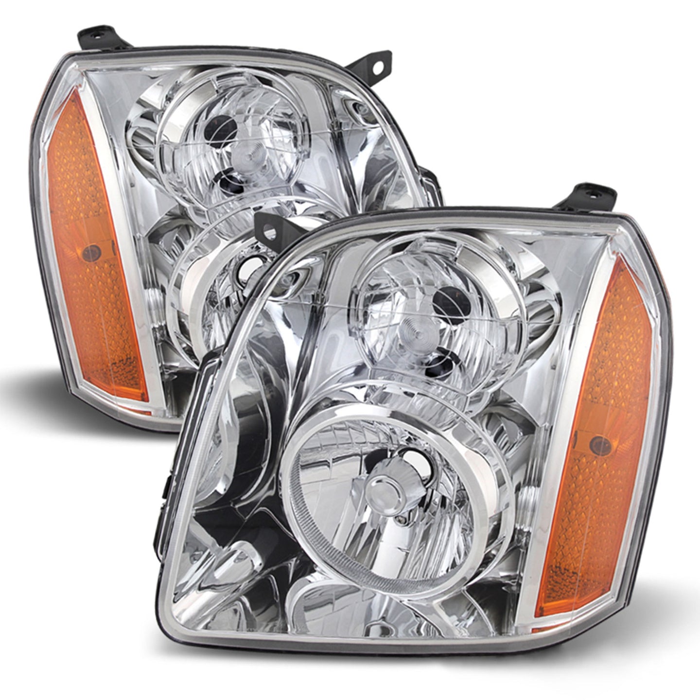 AKKON - Fits 2007-2014 GMC Yukon XL 1500 / XL2500 SUV Black Headlights + Clear Fog Lamp Lights Pair Left+Right