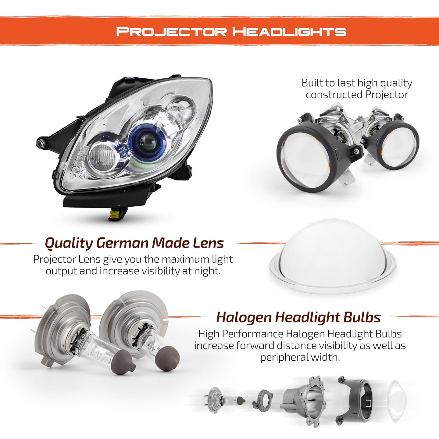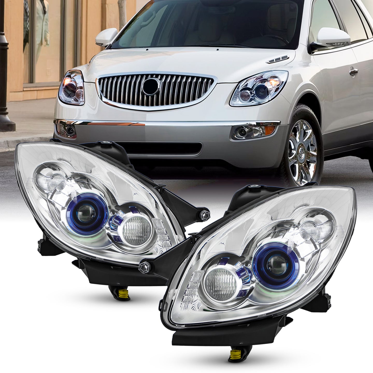 AKKON -Fits 2008-2012 Buick Enclave [HID/Xenon Type] Projector Chrome Headlights Pair Driver+Passenger w/AFS Replacement