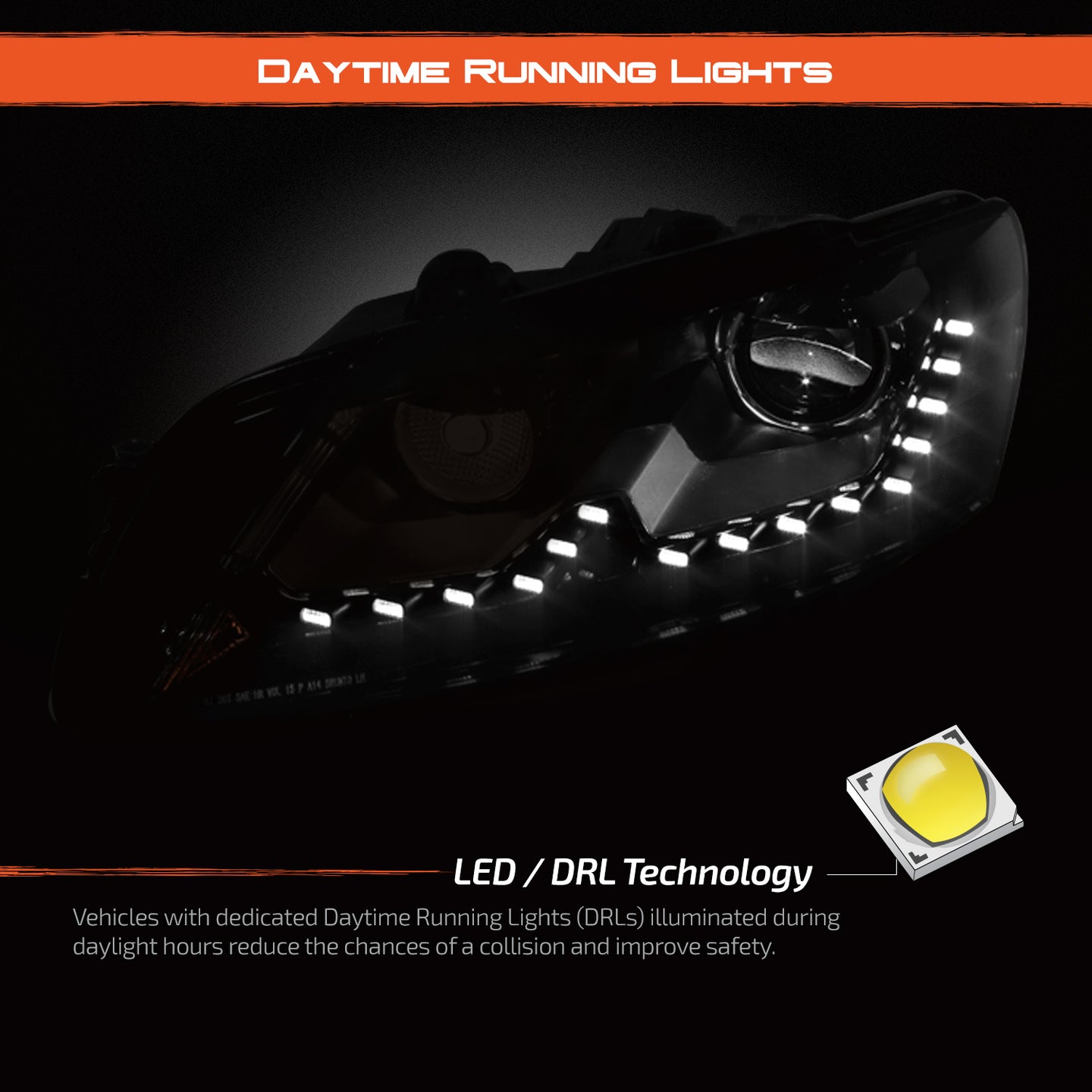 AKKON - Fits 2012-2015 Volkswagen VW Passat B7 Projector Black Headlights Pair Left+Right w/LED DRL Running Replacement