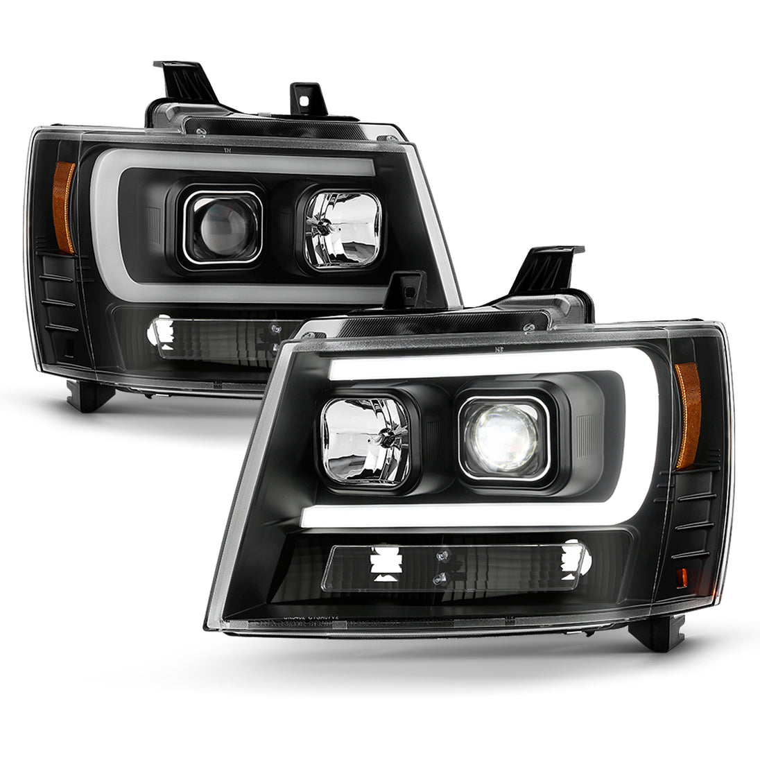 AKKON - Fit 2007-2014 Chevy Suburban 1500/2500 Tahoe/Avalanche Halogen Type [LED Low Beam DRL C-Shape] Projector Headlights