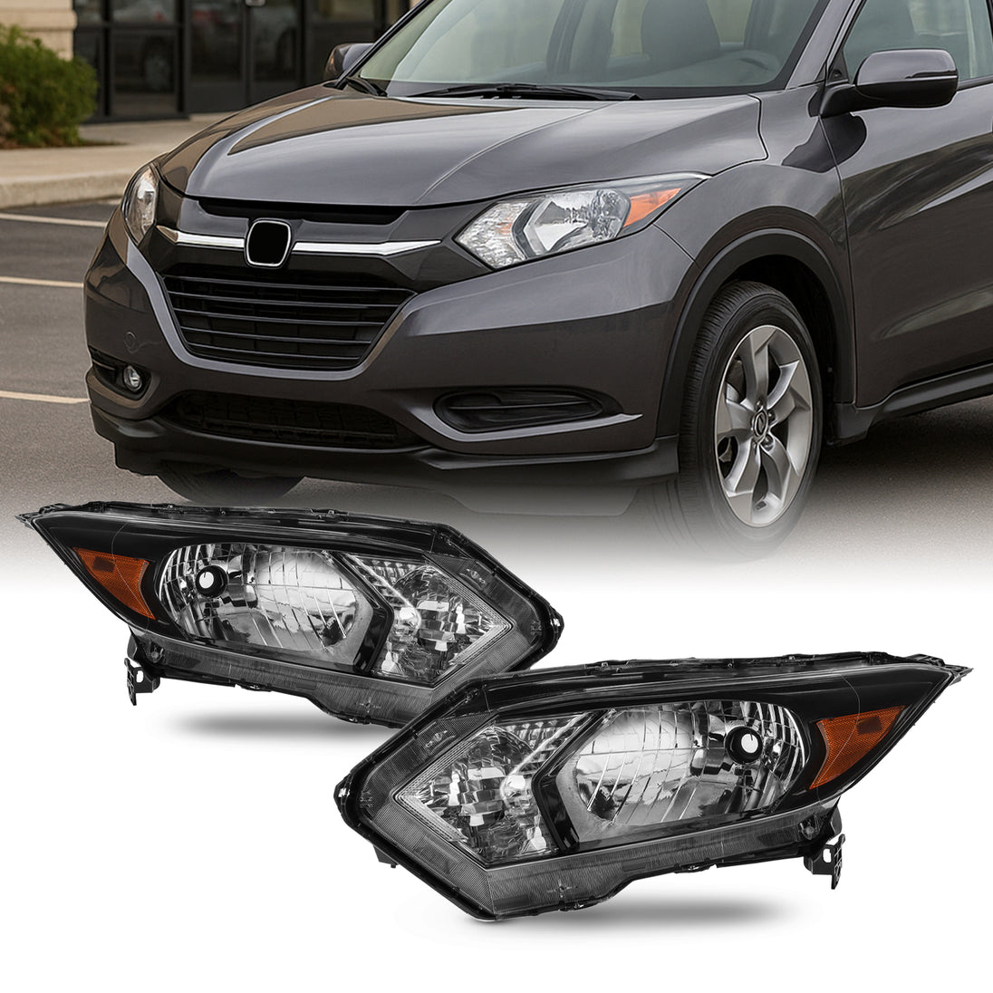 AKKON - Fit 2016 2017 2018 Honda HRV 16-18 Halogen Type Headlight Headlamp OE Style Black Housing Driver - Passenger Direct Replacement