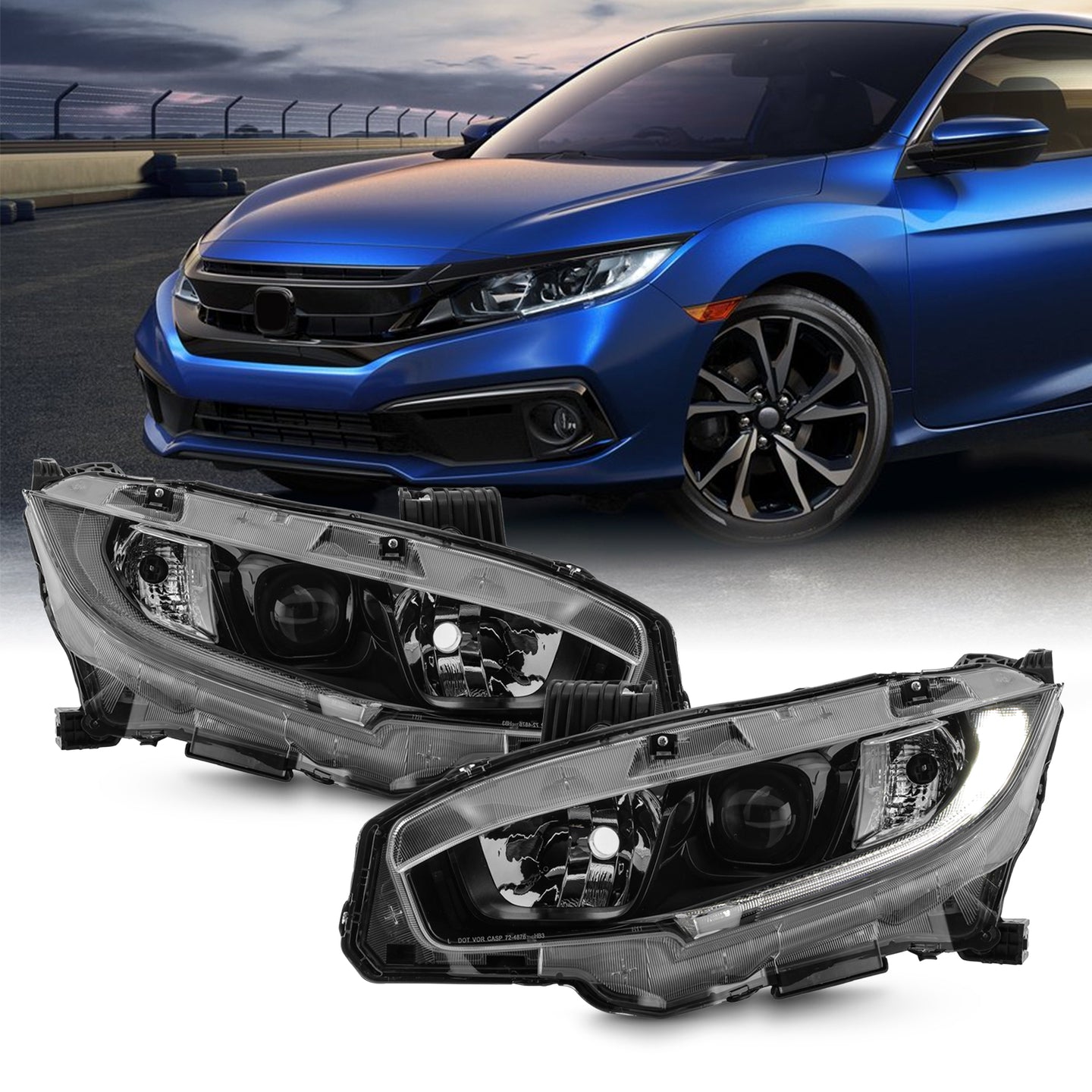 AKKON - Fit 2019 2020 2021 Honda Civic 19-21 Halogen Type Projector Headlight OE Style Black Housing Driver Passenger Assembly
