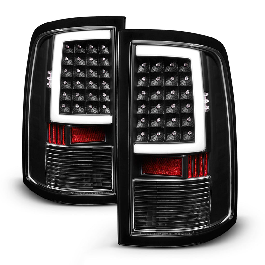 AKKON - Fits 2009-2018 Ram 1500 2010-2018 Ram 2500 / 3500 Black Smoked Headlights + [C-Light Bar] LED Blk Tail Brake Lights Pair