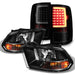 AKKON - Fits 2009-2018 Ram 1500 2010-2018 Ram 2500 / 3500 Black Headlights + [C-Light Bar] LED Blk Smoked Tail Brake Lights Pair