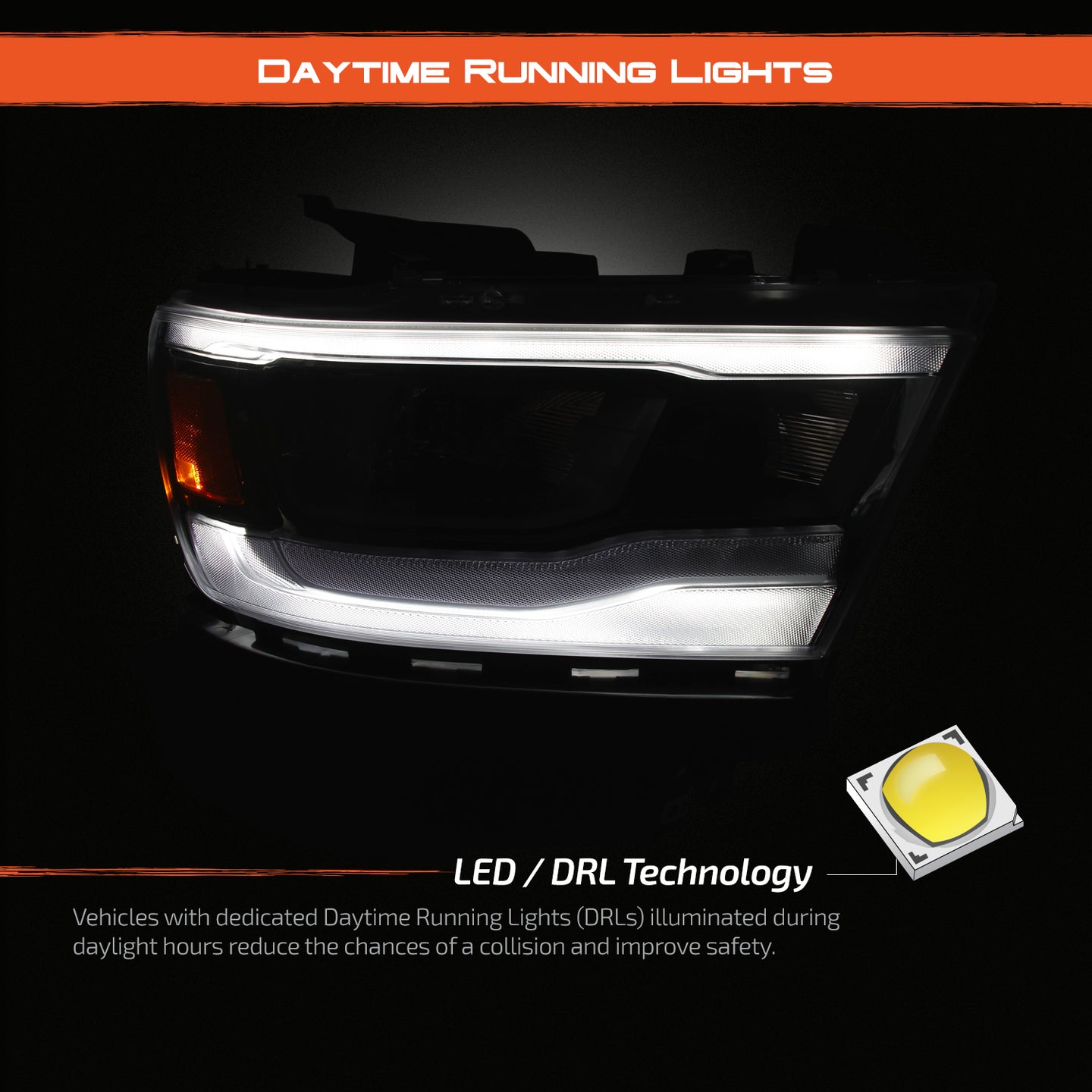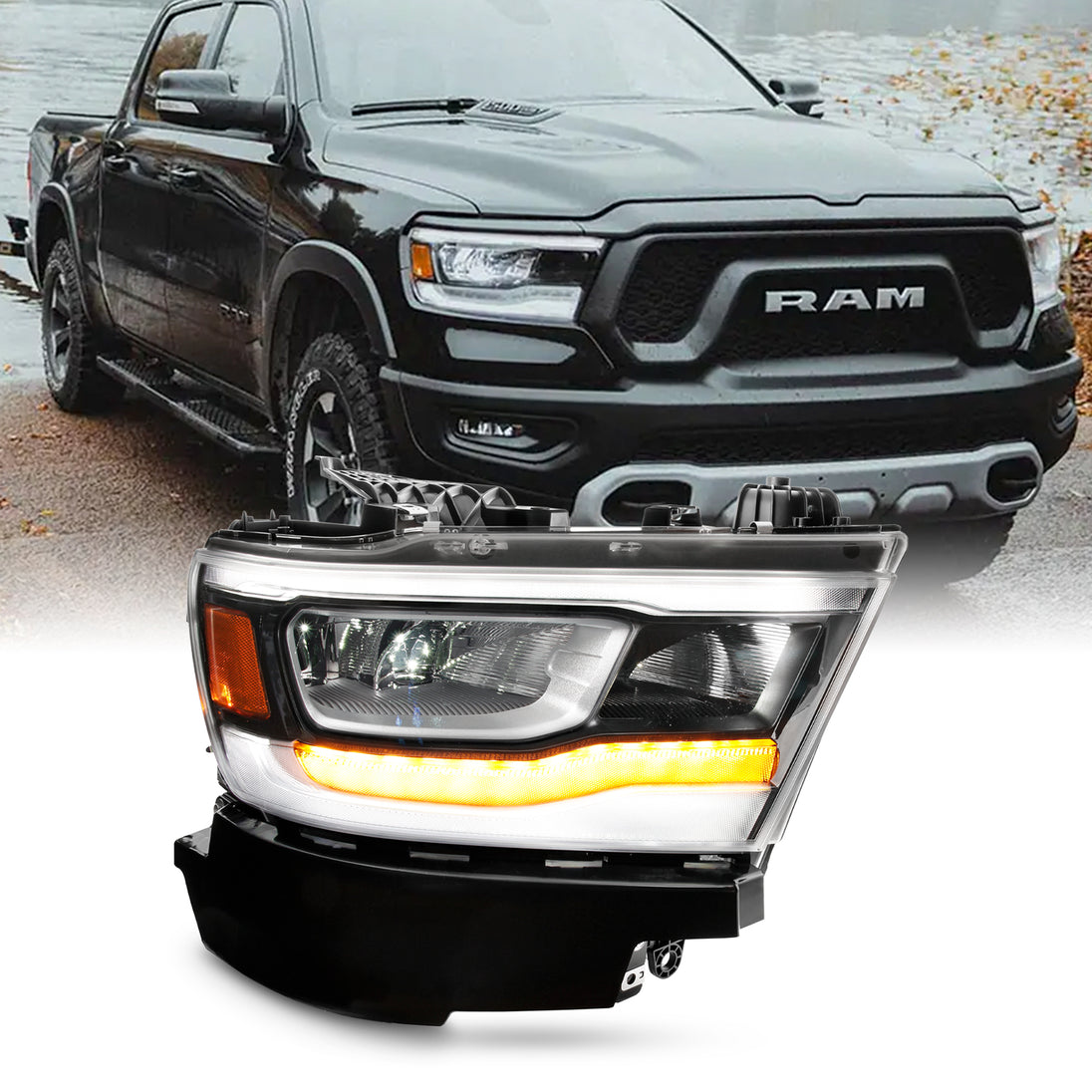 AKKON - Fits 2019-2023 Ram 1500 [Full LED] Tube DRL Running Signal Headlight w/ Chrome Bezel Reflector Passenger Right