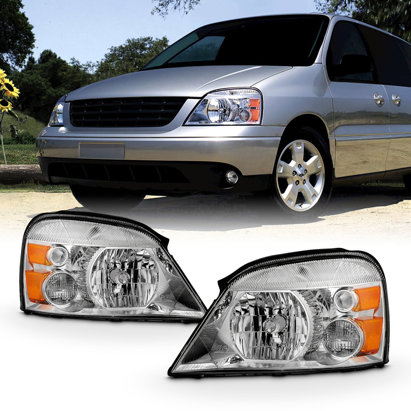 AKKON - Fits 2004-2007 Ford Freestar 04-07 Mercury Monterey Chrome Headlights Pair Driver Left+Passenger Right 2005 2006