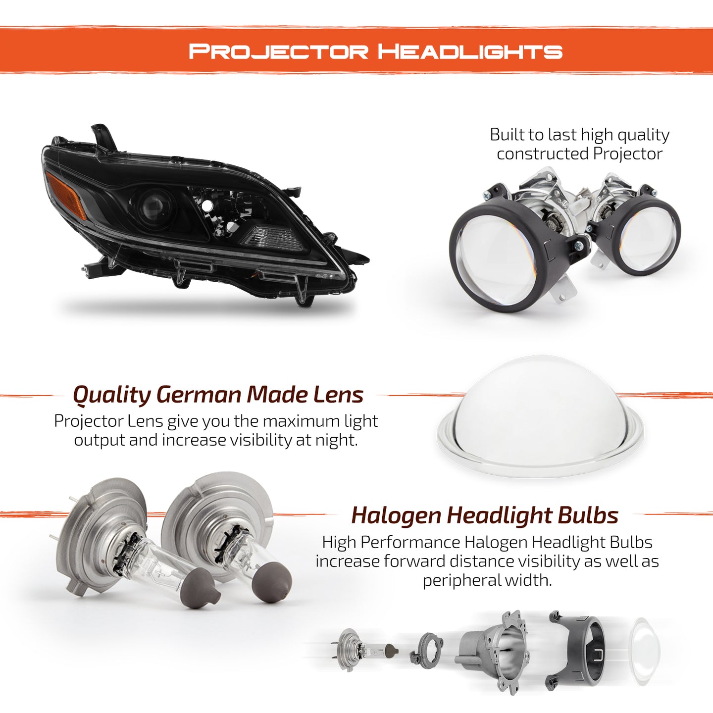 This is a 100% brand new pair of Replacement Headlights in Black Housing with Clear Lens