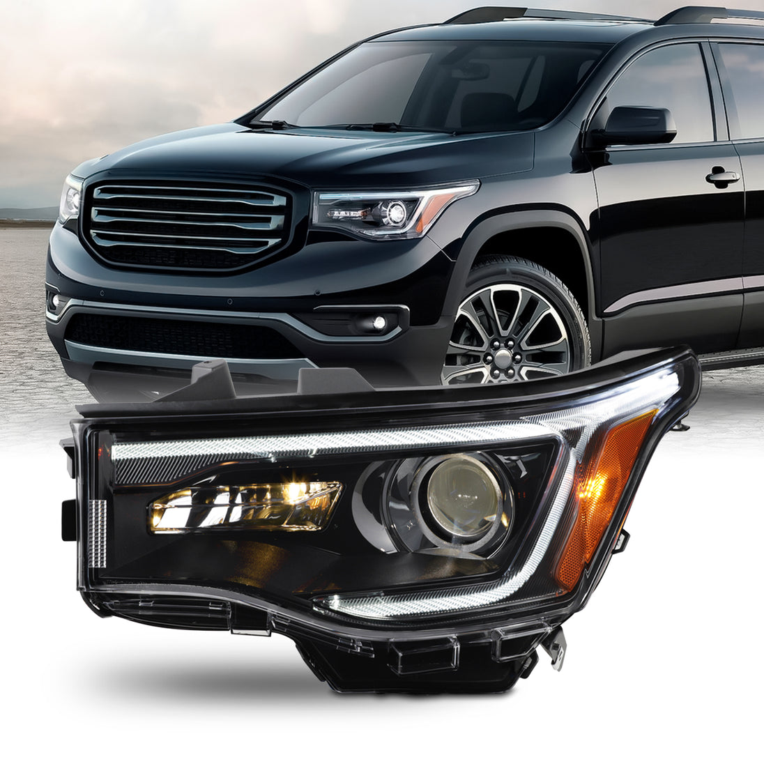 AKKON - Fit 2017 2018 2019 GMC Acadia 17-19 w/LED DRL Halogen Projector Headlight Black Houing OE Style Driver Left