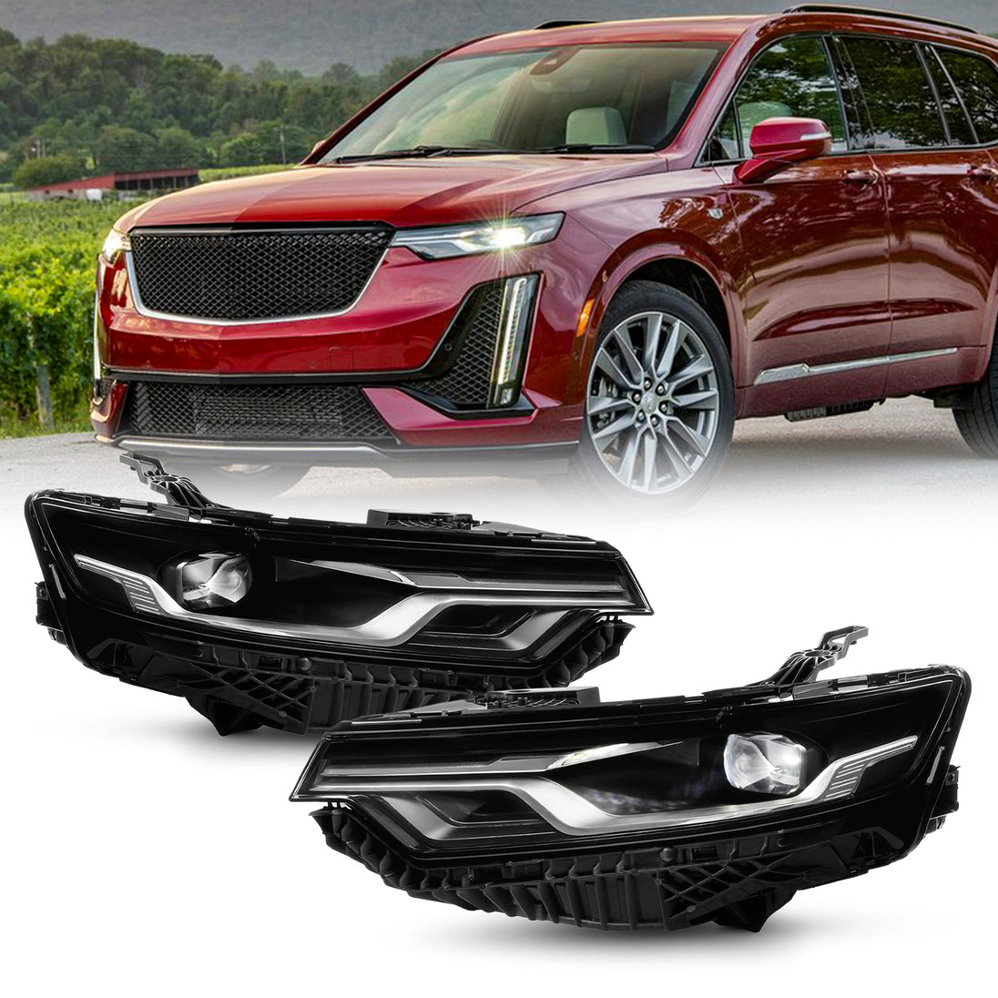 AKKON - Fit 2020 2021 2022 2023 Cadillac XT6 [FULL LED] DRL Signal Projector Headlights Pair Left+Right w/o Super Cruise