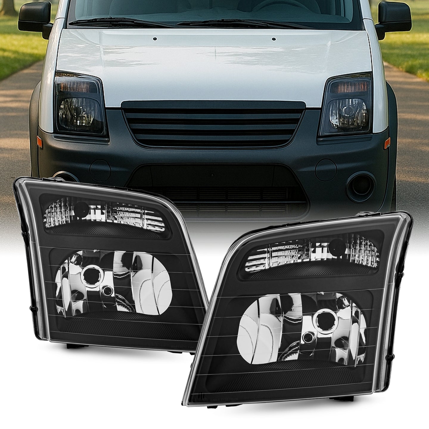 AKKON - Fits 2010-2013 Ford Transit Connect Black Headlights Headlamp Pair Driver Left+Passenger Right Replacement
