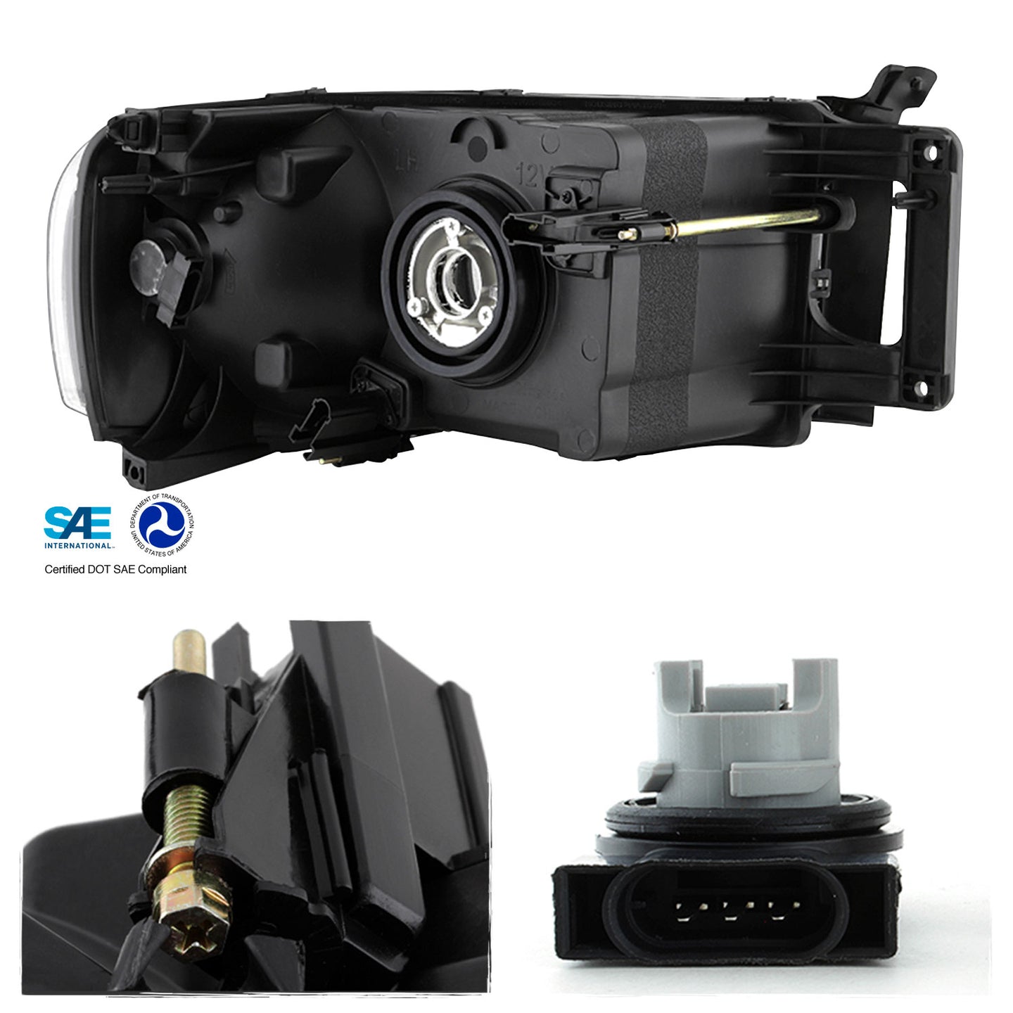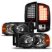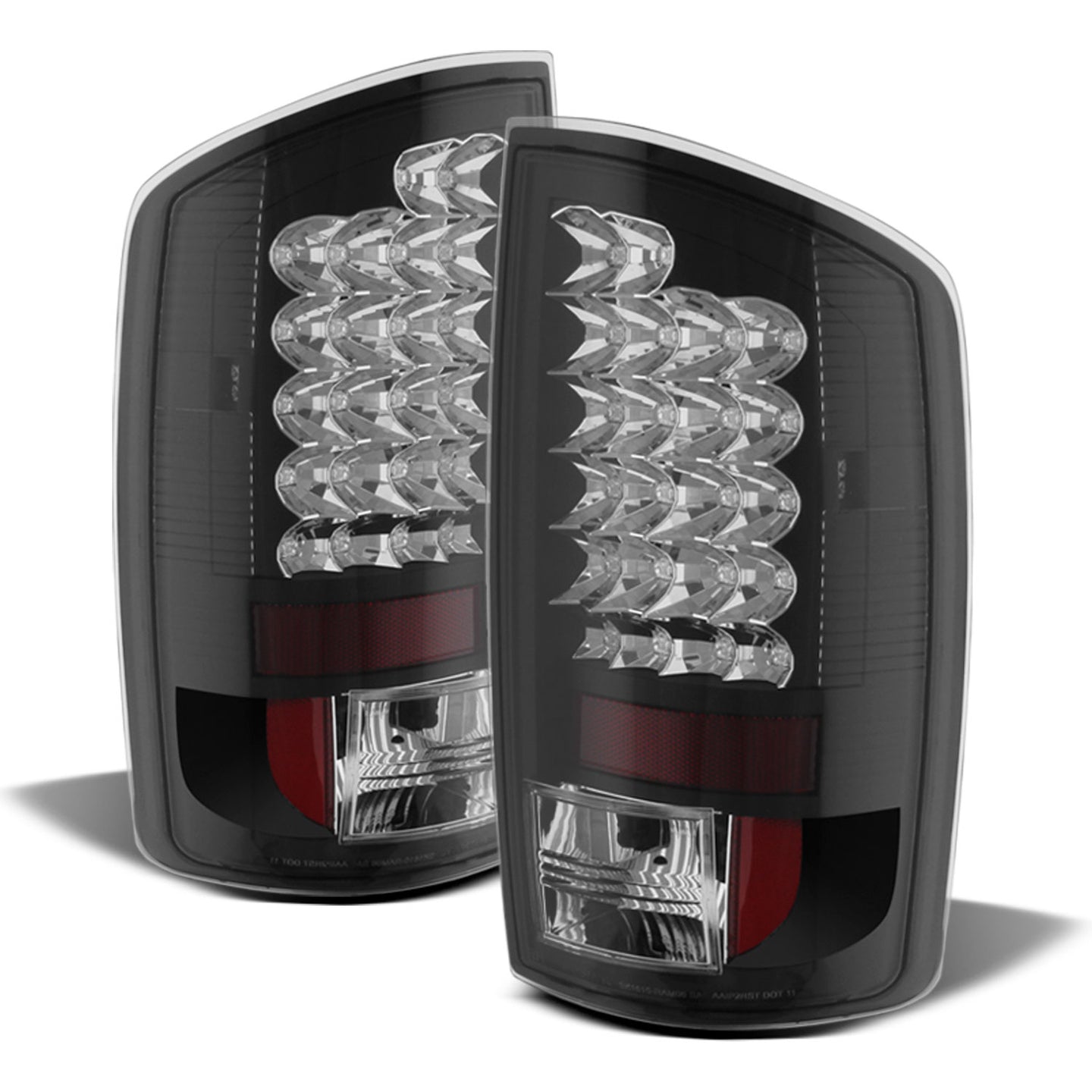 AKKON - Fits 2002 2003 2004 2005 Dodge Ram 1500/ 2500/ 3500 Pickup Black Headlights + Blk LED Tail Brake Lamp Pair Left+Right