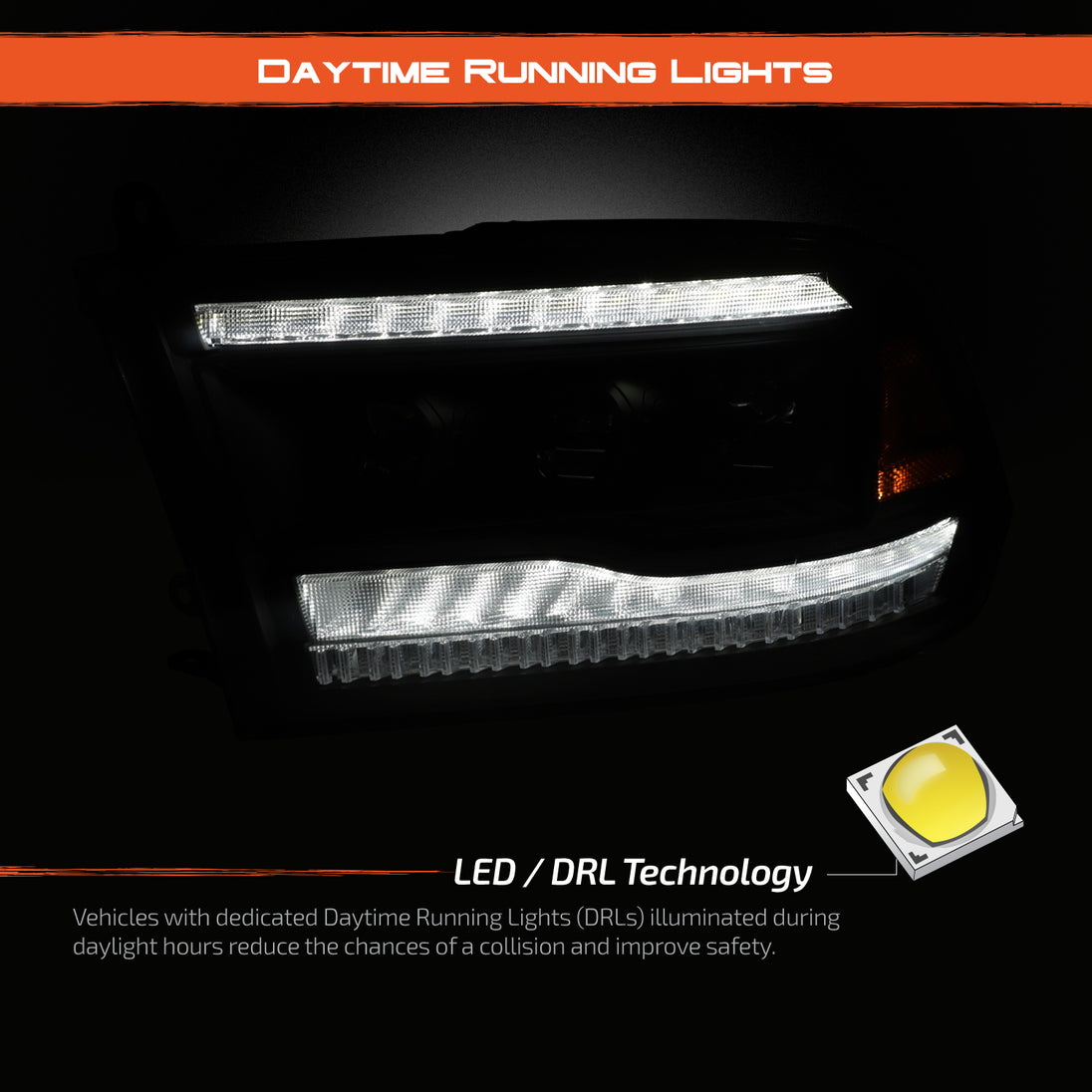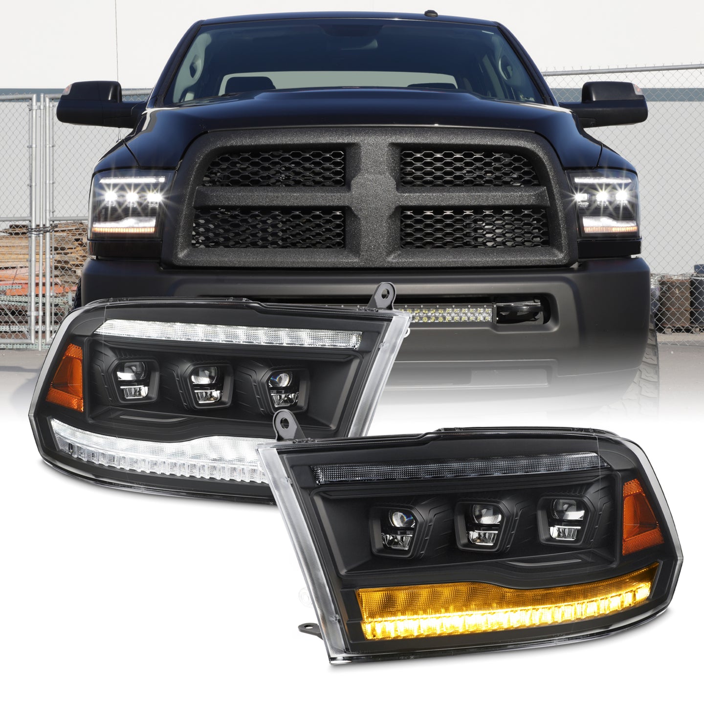 AKKON - Fits 2009-2018 Dodge Ram 1500 2500 3500 Full LED Trio Projector Black Headlights w/ Sequential Turn Signal Lamp