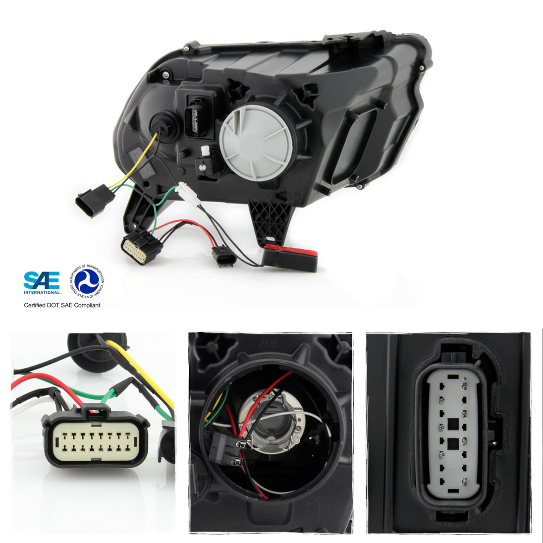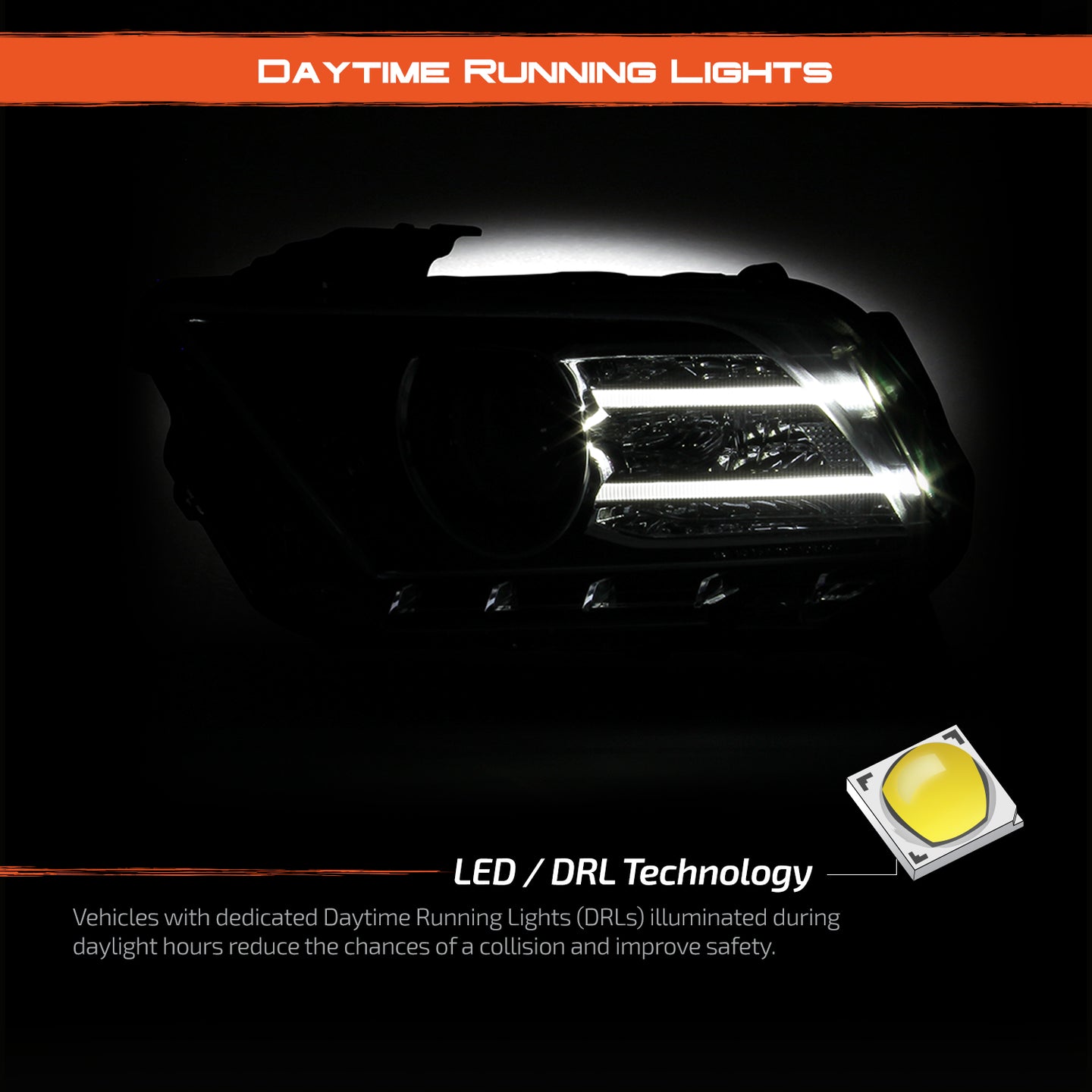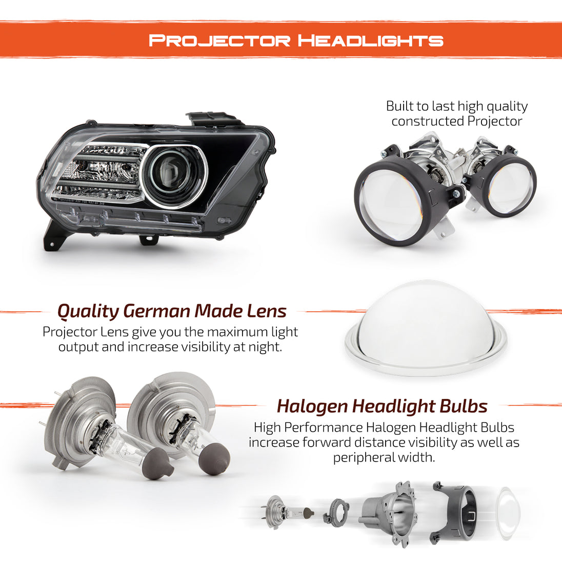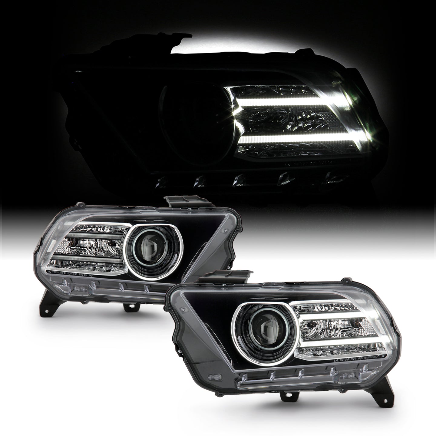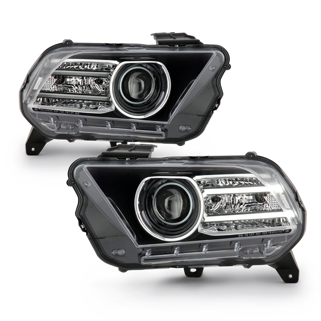 AKKON - Fits 2010 2011 2012 2013 2014 Ford Mustang Halogen Type LED Tube Projector Black Headlights Pair