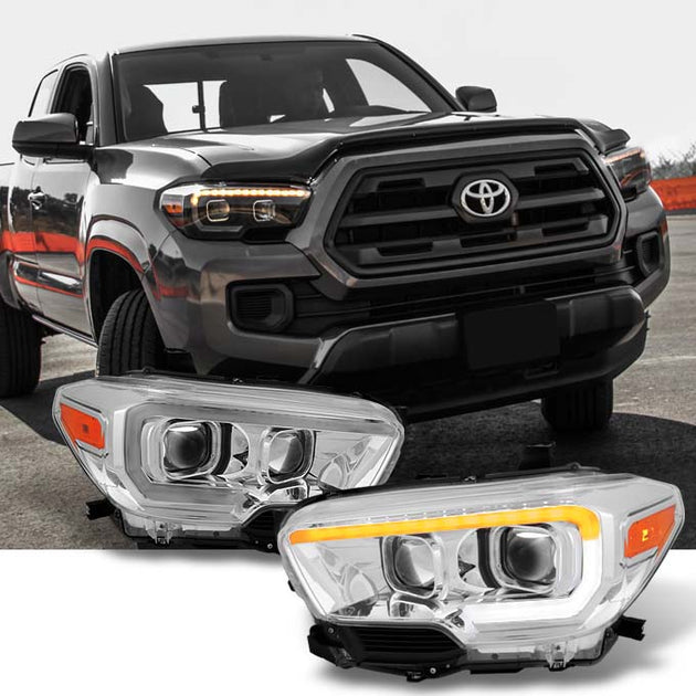 AKKON - For 2016-2023 Tacoma TRD/Limited Sequential LED Tube Design Chrome Square Projector Headlights