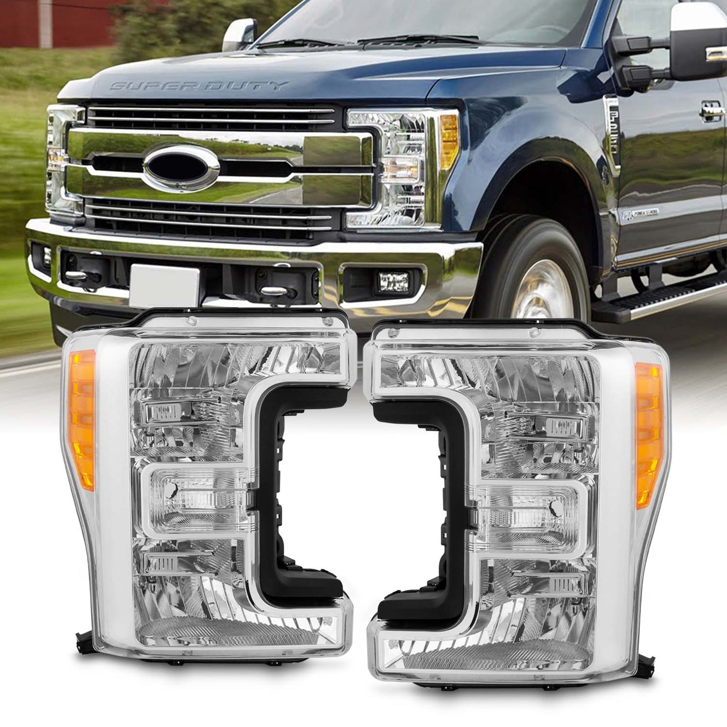 AKKON - Fits 2017-2019 Ford F250 F350 F450 F550 Super Duty Pickup [Halogen Type] Chrome Headlights Headlamps Pair LH+RH