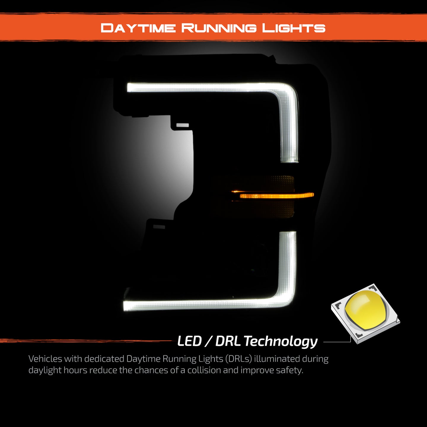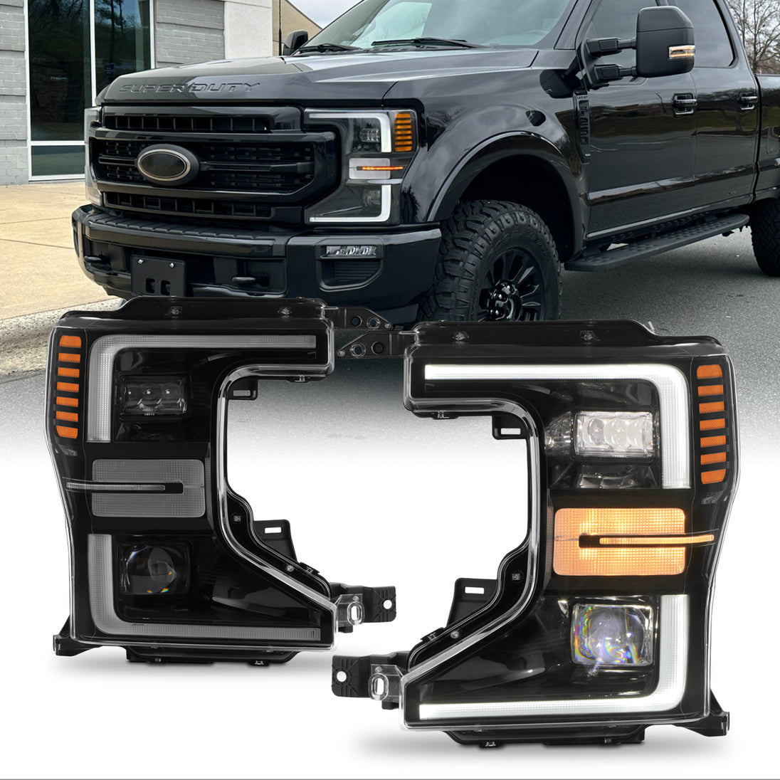 AKKON - Fits 2020-2022 Ford F250 F350 Super Duty [Halogen Type] LED-Beam DRL Turn Signal Projector Black Headlights Pair