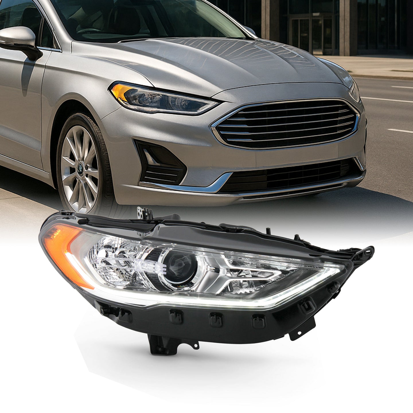 AKKON - Fits 2017-2020 Ford Fusion Halogen w/ LED DRL Model Projector Chrome Headlight Passenger Right Side Replacement
