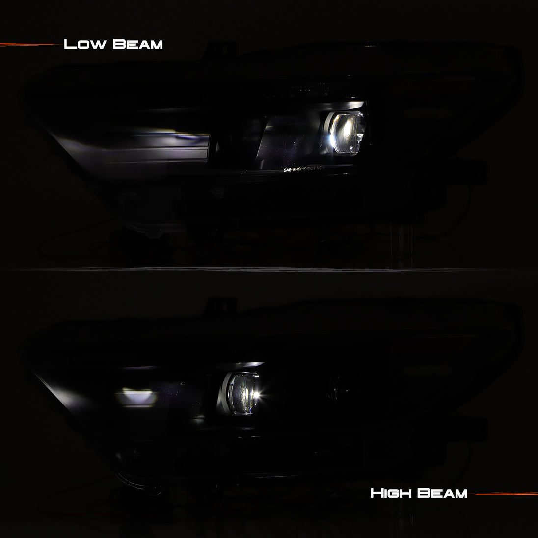 AKKON - Fits 2015-2017 Ford Mustang Proejctor Black Headlights Pair Left + Right w/ LED Welcome Light + DRL Running Lamp